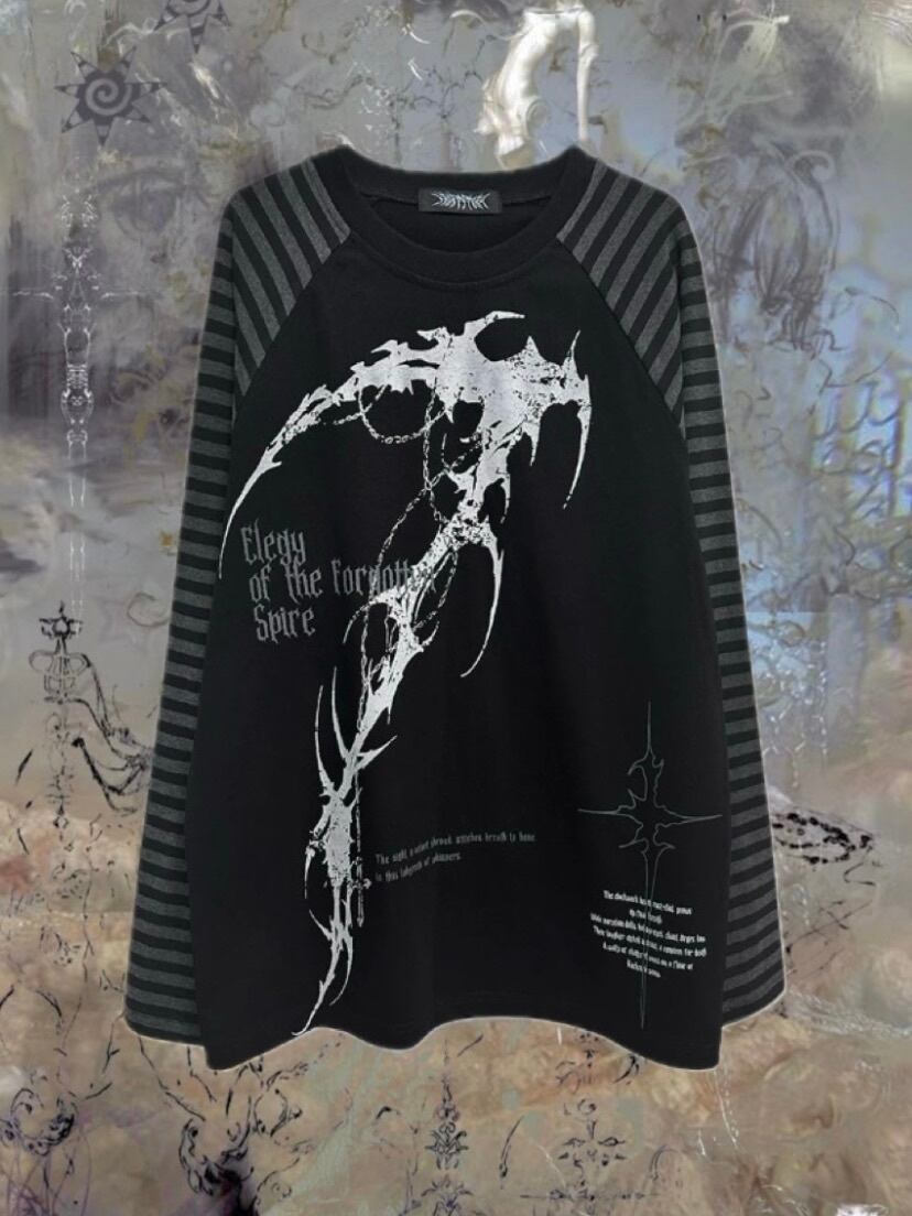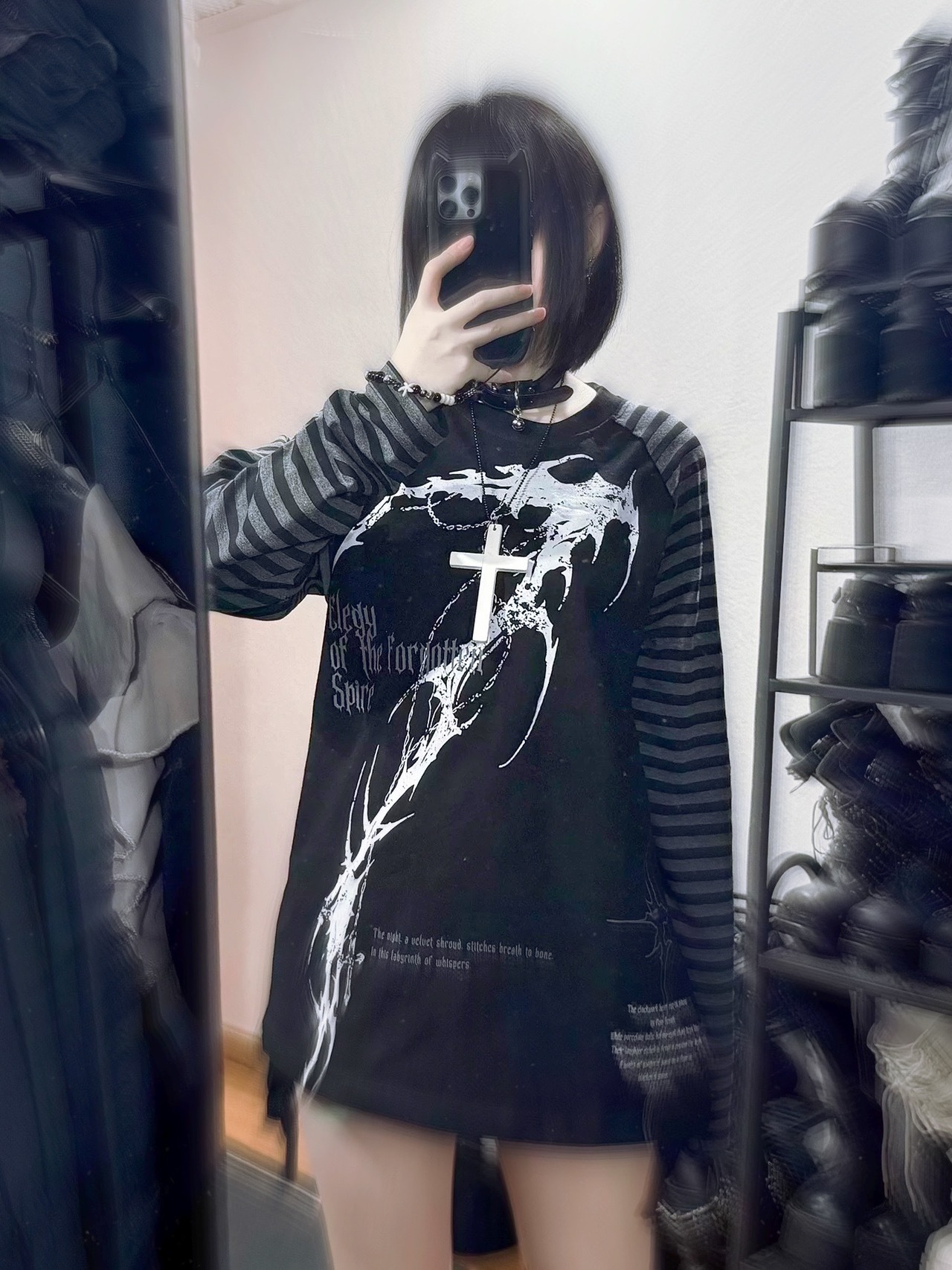 サブカル×地雷のユニセックス長袖Tシャツ。 袖のストライプにも注目◎