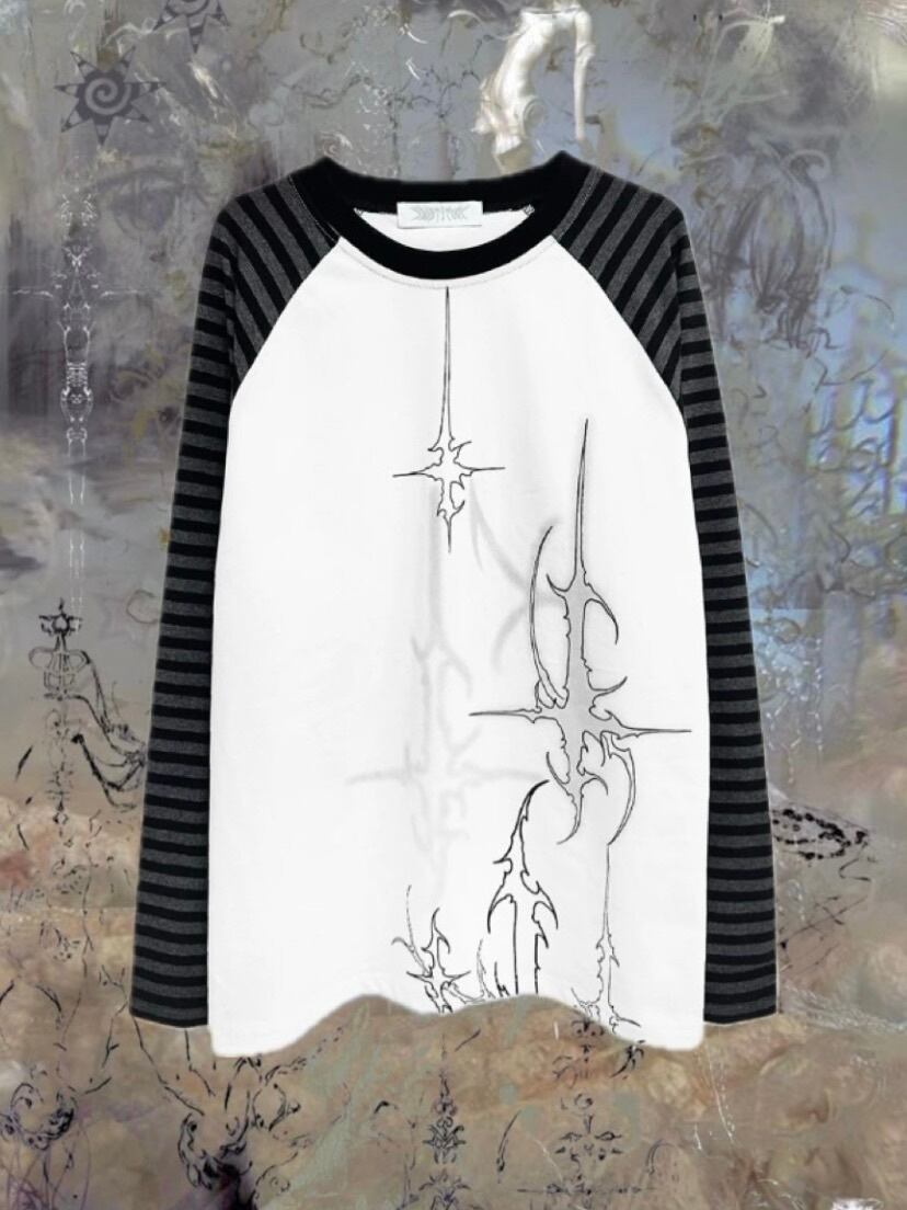 サブカル×パンクのユニセックス長袖Tシャツ。 バックデザインにも注目◎